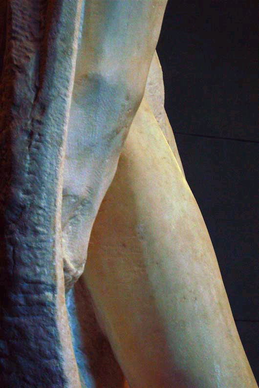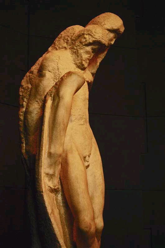 | そして石文化の頂点、ミケランジェロを見るべく、スフォルツェスコ城に回る。 ロンダニーニのピエタ。 盲目に近い状態で死ぬ前まで彫っていた90才の人生を考える。 4つのピエタは、しかし、25才のバティカン大聖堂のもの以外はすべて75才以降 に彫られたのだ。 彫ると言っても、石を彫るのは並大抵ではない。 しかも、このピエタなどは、彫 り直している。 創造のための破壊の神、シヴァと言うのがインドに居たが、 ほとんど出来上がっていた作品を壊して彫り直すということが出来るかね、その年で。 |