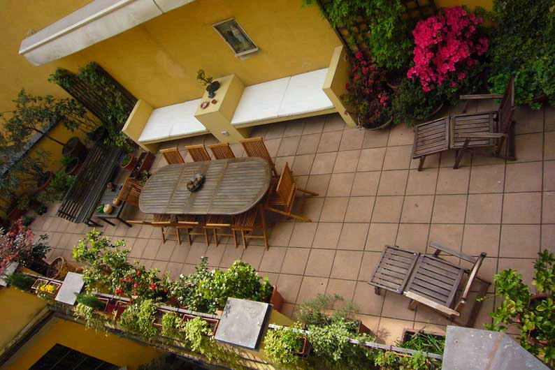 | ある家のテラス。 「そこに2人分、ベッドがあるじゃない」と言いたくなる広さ 。 夏は外で寝られる。 |