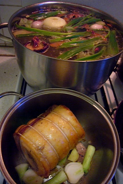 | モナコでは、あれのなにがいろいろあって、つまりはまずはそれをこうしないと どうにもならないというので一旦イタリアに戻る。 さっそく、前々から言われていたラーメンの出前料理をすることになった。 クンフー( 香港空手)をやっている人たち10人に餃子、ラーメン、焼き肉を食べさせるという 「底なしの空腹人との戦い」である。 3日前からラーメンの仕込み にかかりチャーシューを800g、ミラノで見つけたカンスイ入りで生麺を20人分、 餃子を100ヶ、タレを仕込んだ焼き肉を1kg、白いご飯を2kg。 結果は?全部消失しました。 |