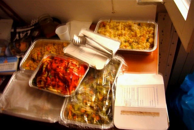キャベツショウガ焼き、その他。 出来上がったものから並べ、寿司の握り4種と 巻き4種にかかる。 |