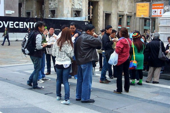 」と気づかされる日々。 ハマっているのは、街の片隅や地下鉄の中で文章を書くこと。 お気に入りの音楽 (それはNY、KJ、PFの3大おなじみ、そして無名のJNであるが)をiPODで聴きながら 今感じていることや新しいメニューの構想、それに下手の横好きで書き続け ている恋愛小説などを、 これまたお気に入りの太めの万年筆で書いていくのだが 、実にインスピレーションが溢れてくるのには驚いた。 部屋で悩んでいたら、ダメよ、あんた。 イタリアの街は、今更僕には「異国」とは感じさせてくれないが、 それでも時々はびっくりするような風景に出会い、感動や感激の風が吹いてくる。 ああ、生き ているって、しみじみ楽しいんだよ。 もう半世紀以上前に、親父の精子がオフクロの卵子に侵入してくれて、ありがとう。 その日も聖堂の階段で書き物をしていたら、目の前になにやらアジア人がわらわら集まってきて、 そこへどういうわけかテイクアウェイのピザを5箱持った男が 来て突然、路上夕食会が出現したのだった。 こういうことをやっているから、アジア人は馬鹿にされるんだぜ。 ああ、オレと違う言葉を話す民族の人たちで良かった。 |