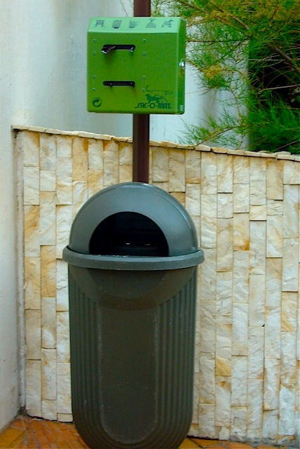 | モンテカルロはとにかく街がきれい。 ゴミも落書きも無い。 ちょうどディズニー ランドのような感じ。 これはお犬のお散歩の際のおウンチを入れるためのおビニ ール袋の無料配布ボックスですのよ。 その袋の色が真っ黒というのもさすがだね 。 |