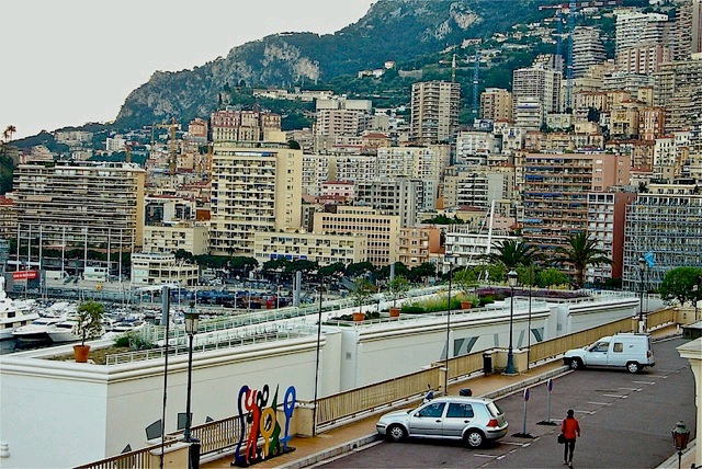 | 道を登ると視界が開けて港が見えた。 後ろは南仏の断崖風景。 シンガポールとは 、なんと言うか、格が違うね。 |