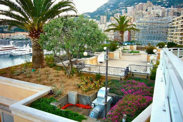 | 「空中庭園」という名が似合う手入れされ尽くした空間。 歩いていても全く安全 というのが感じられる。 でも、そこのポールに設置された防犯カメラのおかげかもね。 |
