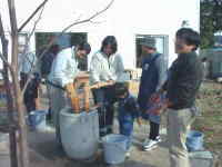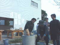 大掃除の後は、楽しくわいわい言いながら、おもちつきの準備。