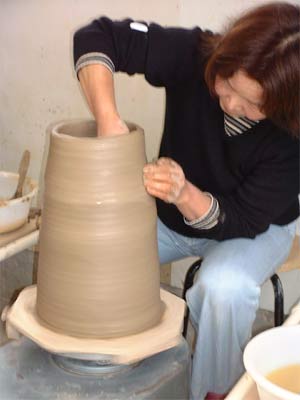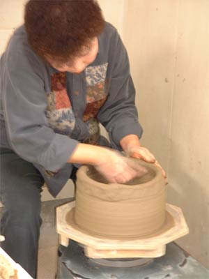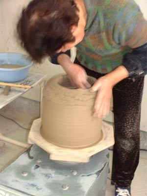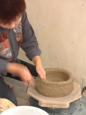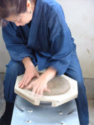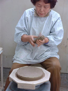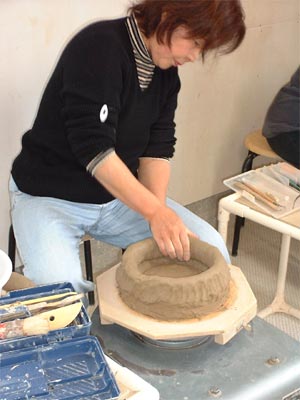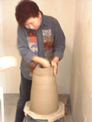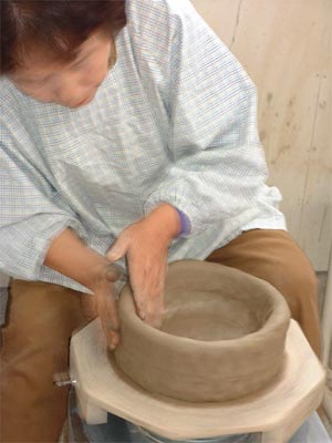 相手が大きいので、底の部分になる土は、気をつけて菊練りします。