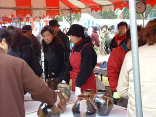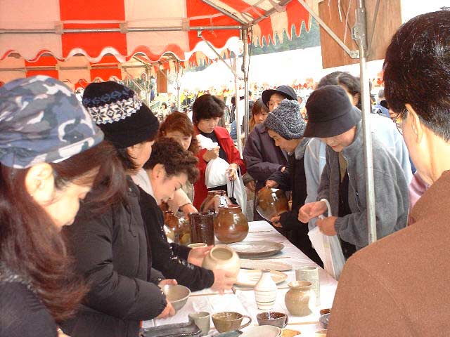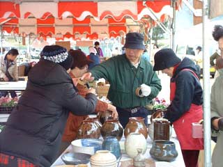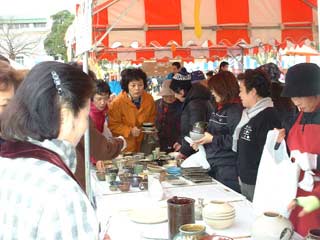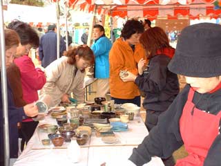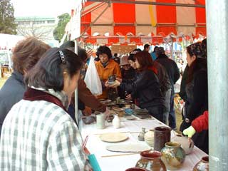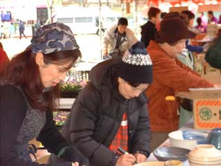 | 待ちかねた人たちが次々と作品を買っていきます。 一人で何点も買う人がいます。 |