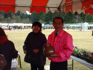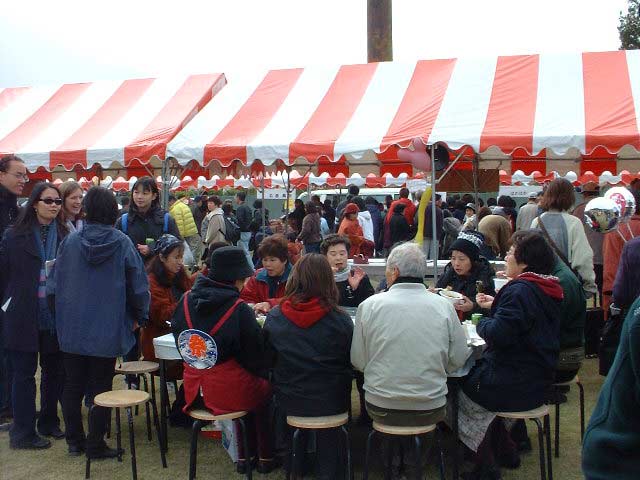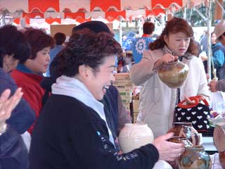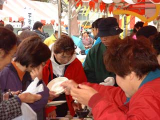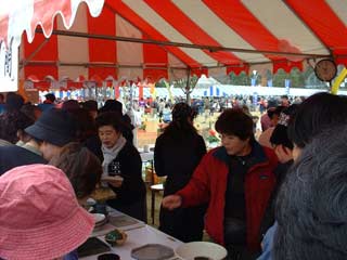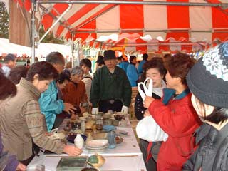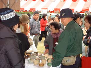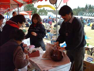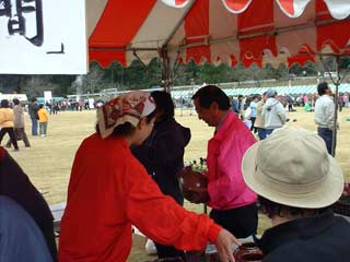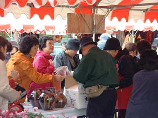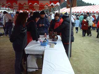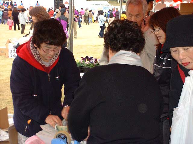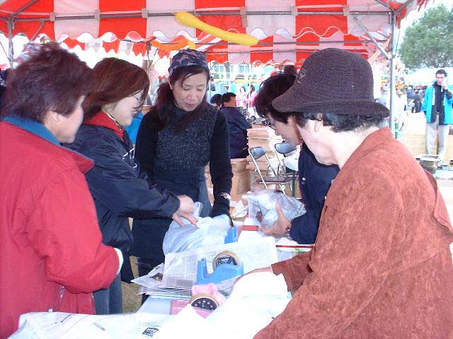 | 栗源町の町長さんもお買い上げ。 いも祭りなのに、なかなか食べるひまのない状態です。 |