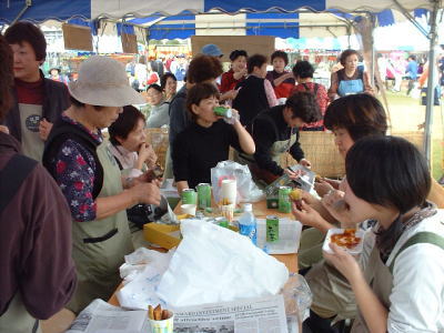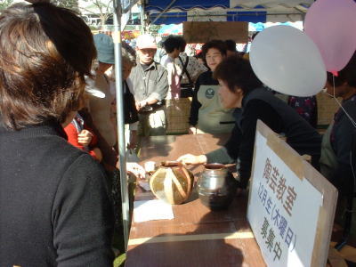 | 11時30分ごろ、ついに完売の拍手が鳴り響きました。 店員をやっていただいた生徒さんたち、ご苦労様でした。 また、来年もよろしくお願いいたします。 売り上げは経費を除いた全額を、栗源町社会福祉協議会および、 JVC(日本ボランティアセンター)に寄付します。 |