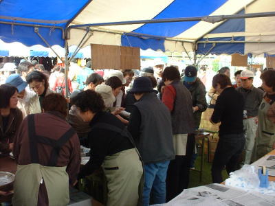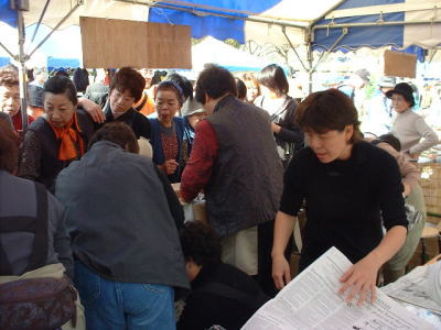 | 11時、三回目の箱出し。その都度、わっとお客さんが詰め掛けます。 | |