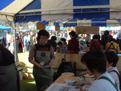 | 心がけのよいせいか、予想に反して、当日は朝から快晴! 気温も夏のようにぽかぽか。 例年通り、開店30分前には、ファンのお客さんがつめかけました。 |