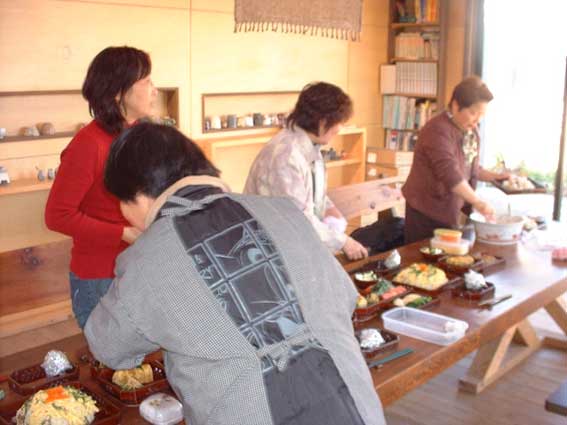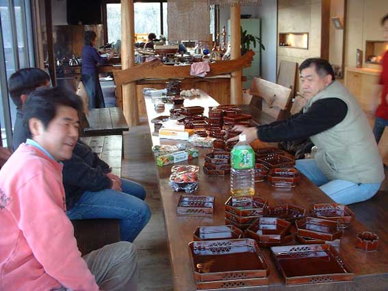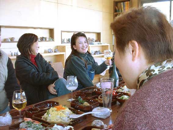 | 4時ごろまで続いた宴会も、無事終了。 食器もきれいになって、宇井さんのもとへ。 どうもありがとうございました。 次回のそばパーティやカレーパーティーにむけて また作陶に励んでください。 |