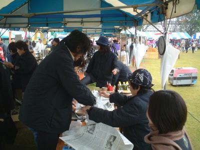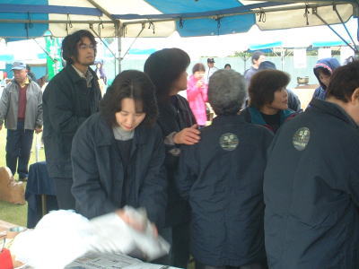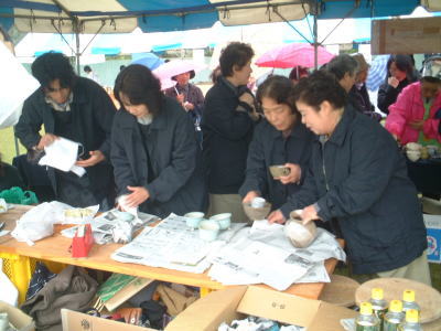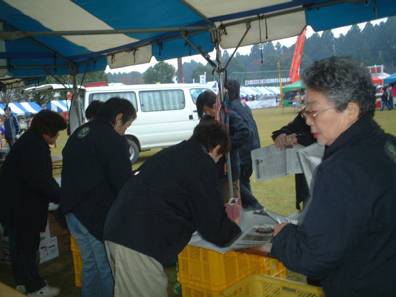 | 大会当日、午前8時前、売り子になっていただく方々が準備に取り掛かりました。 |