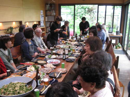| 皆さん、お疲れ様でした。 パーティー後、「間」成田の常設ギャラリーの主役である皆さんと対策会議をしました。 未来へ向けて、楽しい「間」になるように、みんなでがんばりましょう。よろしくお願いいたします。 |