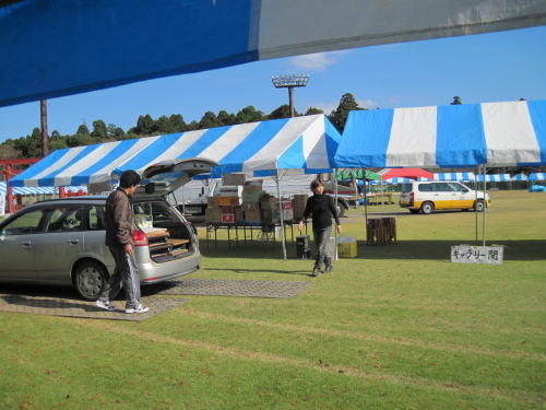 | いも祭り当日、朝7時半集合、会場でのセッティングを完了。 | |