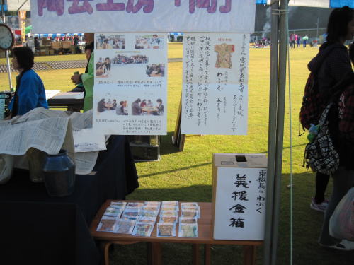 | 午後4時。かたずけ終了。お手伝いの皆さん、ごくろうさまでした、ありがとうございました。 売り上げはこの日のお昼代やらの経費を除いた全額をJVC(日本ボランティアセンター)と 宮城県東松山市の仮設住まいの方々へ、冬の準備として役立てていただくために寄付をしたいと考えています。 |