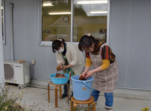 | 前日、もちつき大会用のお米を研ぎます。 | |