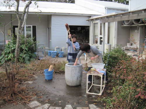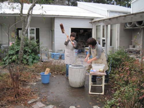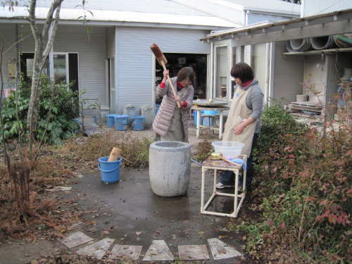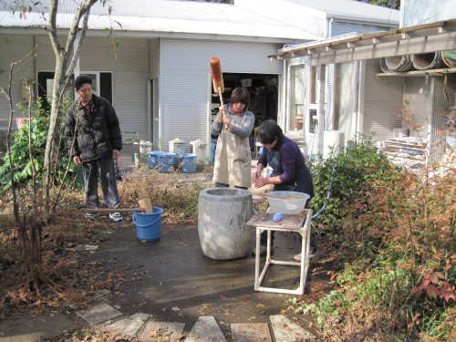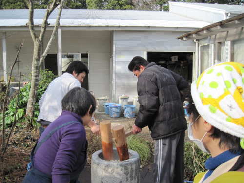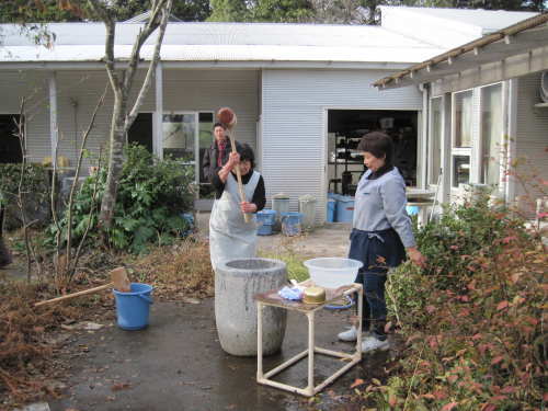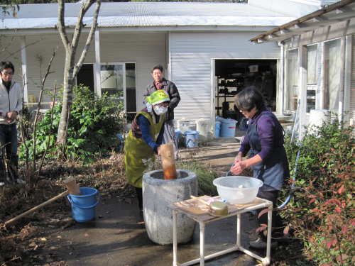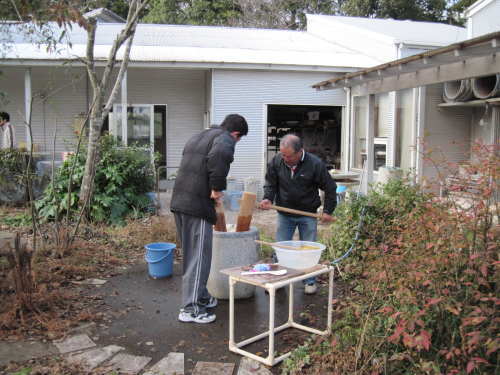 | 大掃除終了後、栗源・成田合同でのもちつき大会の準備が始まります。 | |