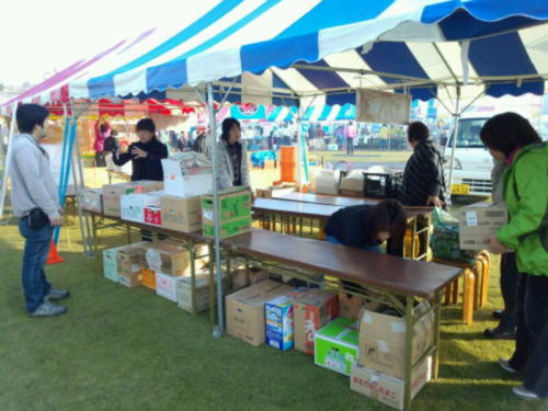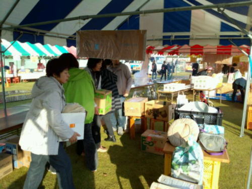 | 終了近く、ほとんどの作品が売れました。お天気が良かったせいもあって、たくさんの人が来ました。 売り上げは経費を除いた全額を、JVCと東松島の仮設へ寄付します。 皆さんお疲れ様でした。来年もよろしくお願いいたします。 |