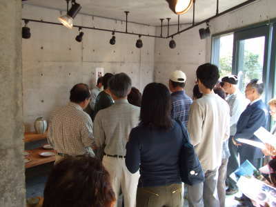 | 展覧会メンバーの自己紹介。苦労話にも、終わった安心感から余裕があります。 大川さん、写真が無くてごめんなさい。 |