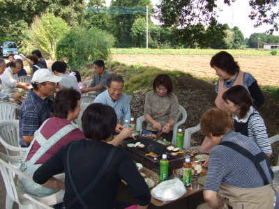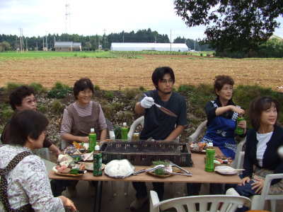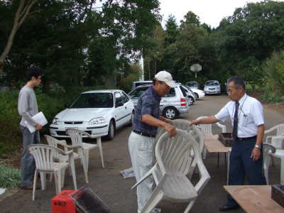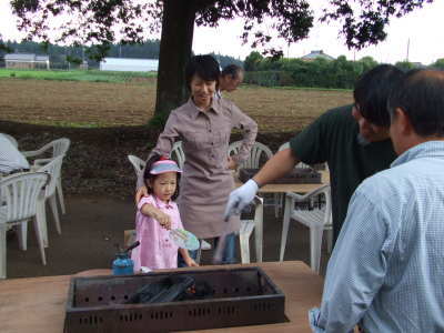 | さぁ、お昼のバーベキュー大会の準備が始まりました。 | |
