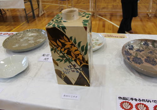 今年の会場は公民館が改装中のため、栗源中学校の体育館。10人の生徒さんに出品してもらいました。