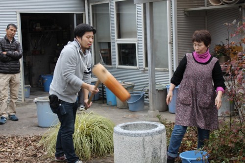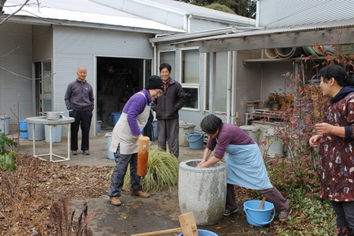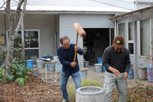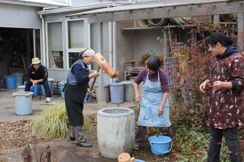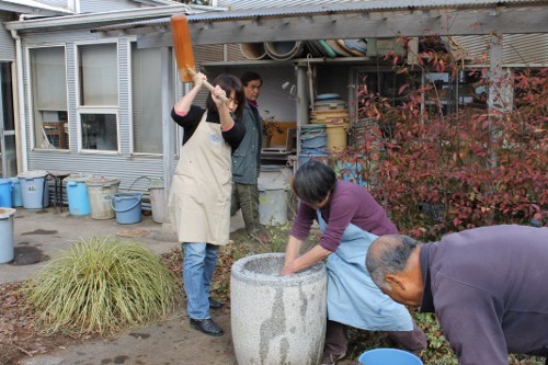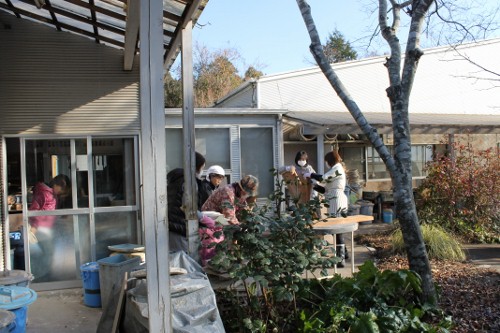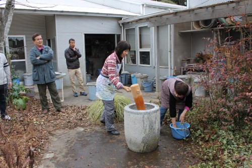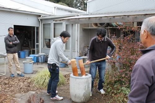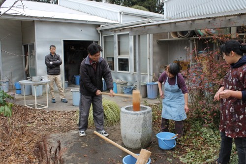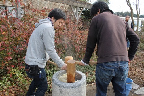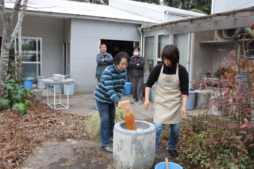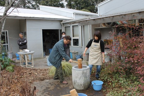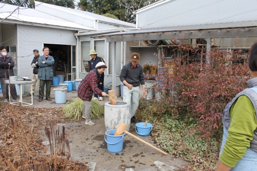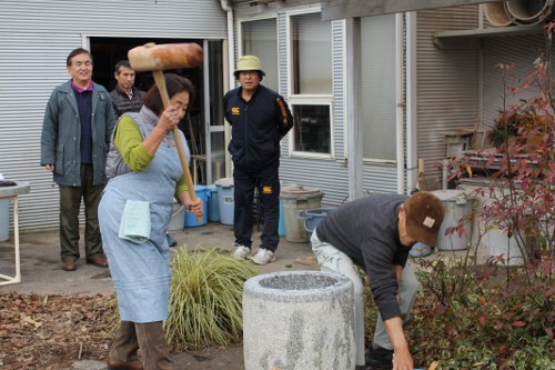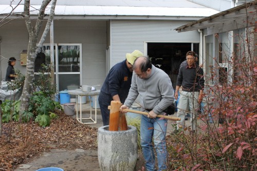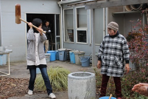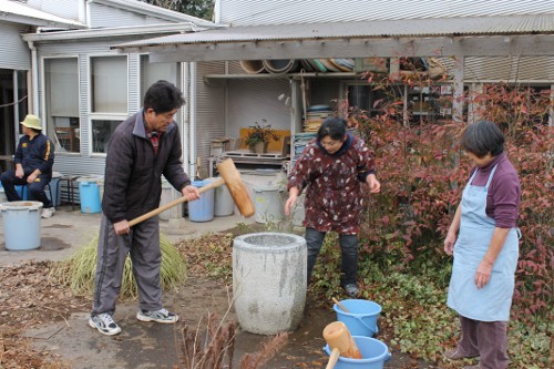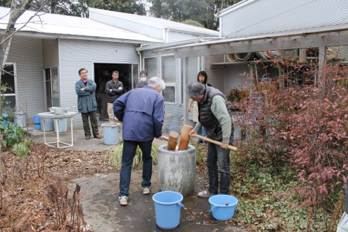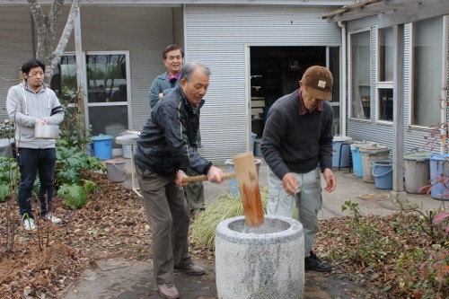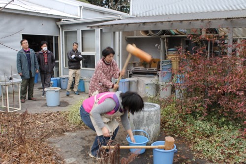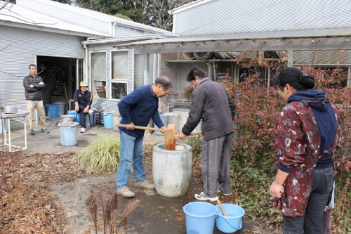 | 11時、栗源教室に成田教室の生徒さんが合流してもちつき大会へ。 | |