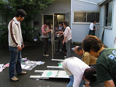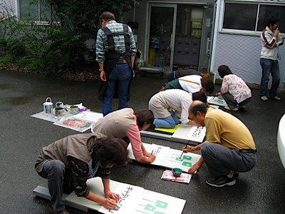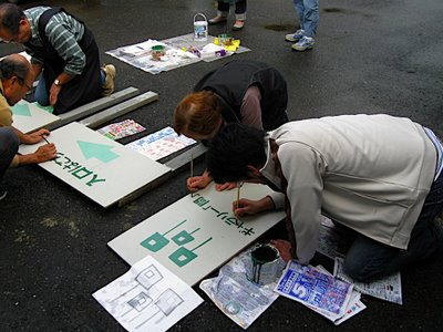 | 説明会の前日、恒例になった看板作りをしました。会期中の注意事項を伝達しました。 | ||