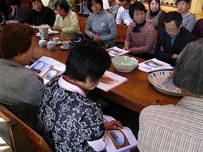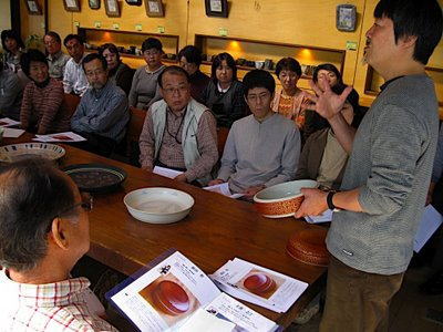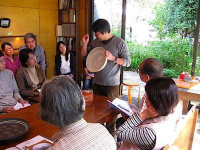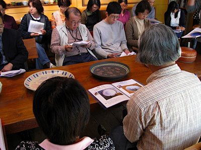 | それぞれの作品について細かい技法の解説や手順を説明します。皆さん真剣に聞いてくれています。 | ||