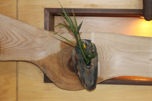 当日、野草を活ける平山先生がおいでになり、参加した生徒さんの作品に花を活けながら、町村先生の講義が行われました。