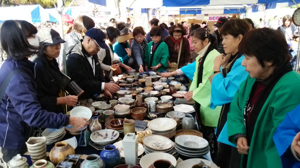 | 今回の人出は7万人以上。作品もほとんどが売れました。お手伝いの皆さんご苦労様でした。 また、作品を寄付していただいた「間」の生徒さん、ありがとうございました。 来年もよろしくお願いいたします。 |