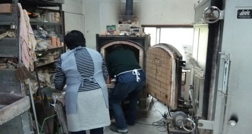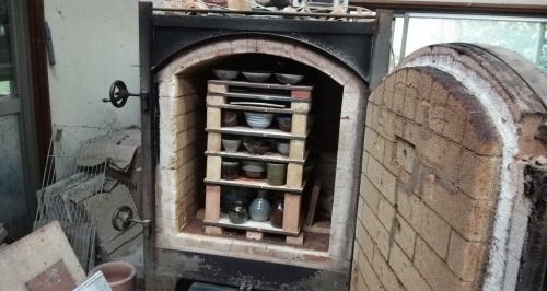 窯焚き前日、窯詰めをしました。できるだけたくさん入れます。