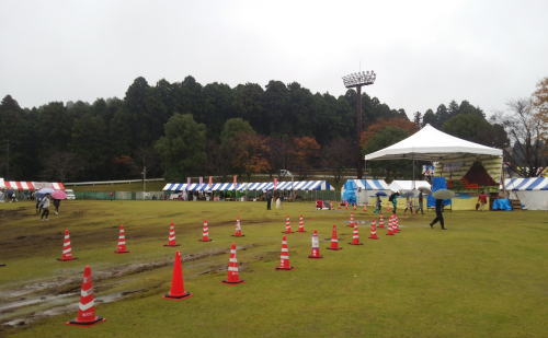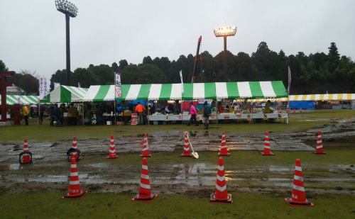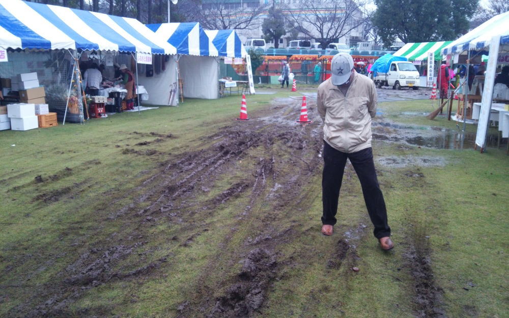| 前日大雨、当日も雨。会場は田んぼ状態。 | |
