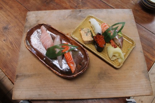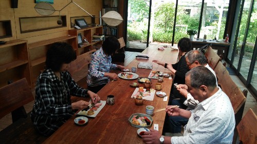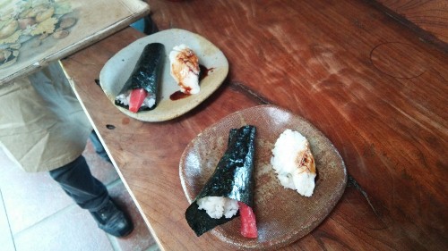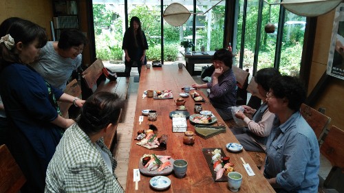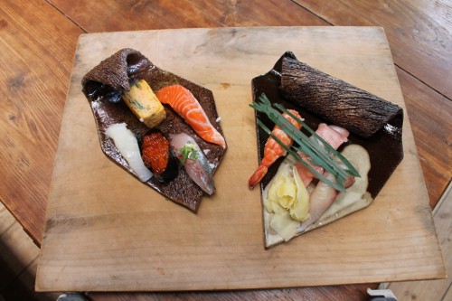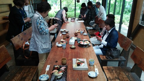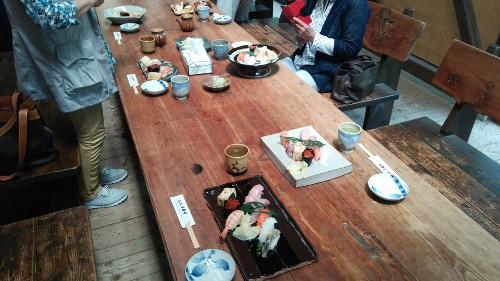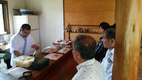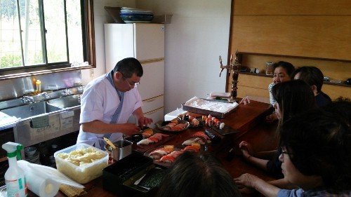 ユーカリが丘にある江戸っ子寿司のご主人が「間」栗源に来てくれました。 今日は「寿司の器展」に参加した生徒さんの器にプロが実際に盛り付ける、というイベントを行いました。 初めての試みなので、皆さんどきどき、わくわくでスタート。 4回に分けて20名の生徒さんが参加。 お皿の考察もそこそこに、いただきまーす。 とてもおいしかった・・・。 すばらしい企画でした。次回が期待されます。