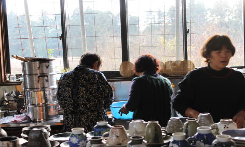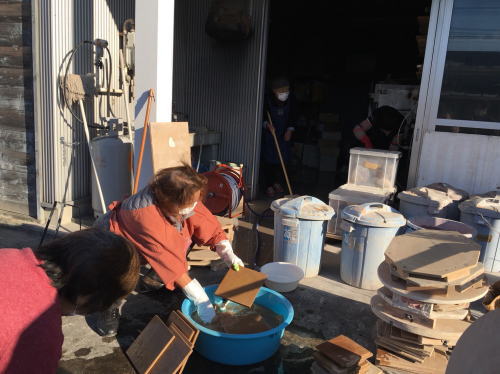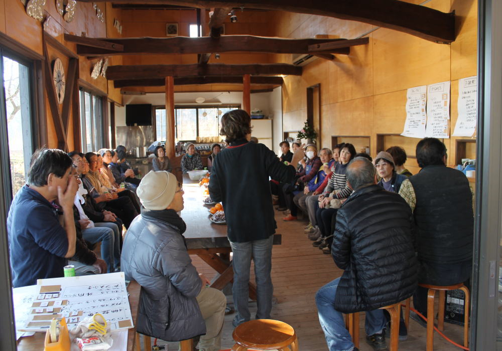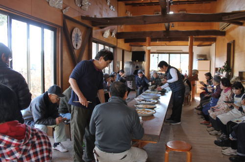 | 大掃除終了後、成田教室・栗源教室の生徒さんがティールームに集合。餅つきの段取りを説明しました。 | |