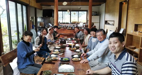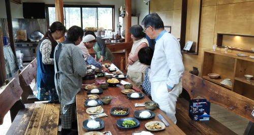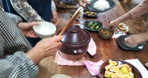 自作の土鍋で新米を食べよう、ということで月曜日クラスの皆さんがおかずを持ち寄りお昼を食べることになりました。