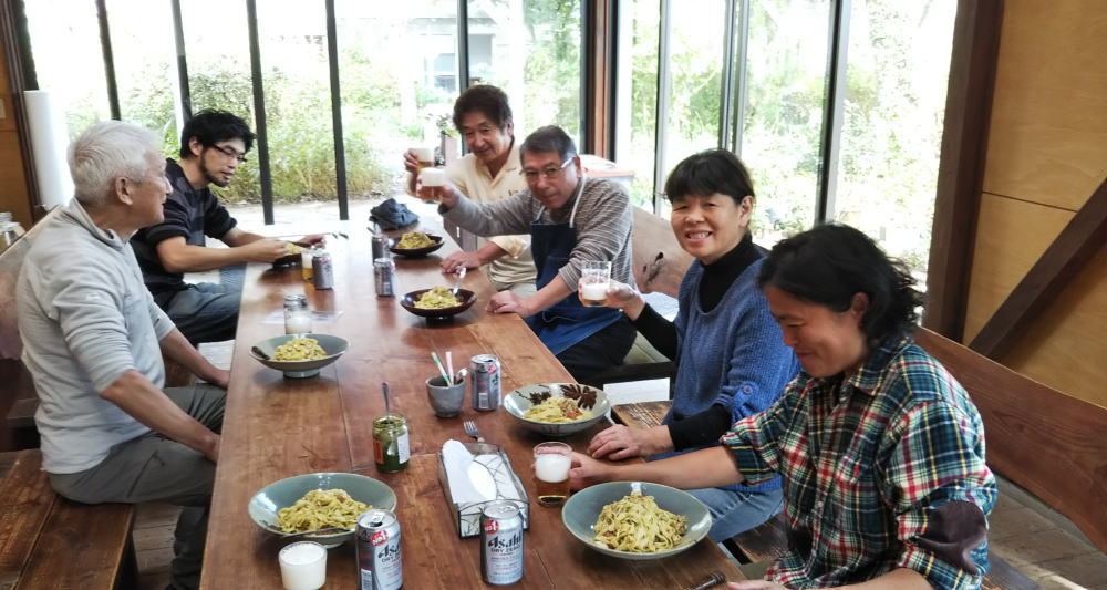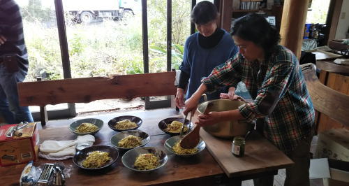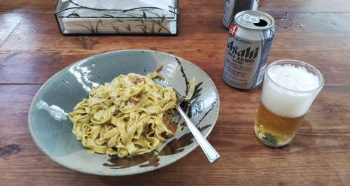 「間」で手打ちパスタをお昼に作ってくれました。