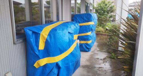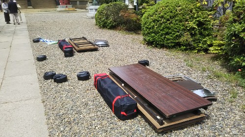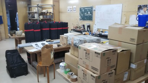 | 事前に成田の「間」に資材を運び込みました。 | |