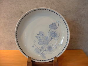 | 佐藤衛(E-3) 染付朝顔文皿 | 長坂宏一(M) 陶刻牡丹紋重箱 |