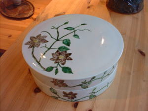 | 川島とよ子(E-5) 白化粧掻落椿文壷 | 林洋子(E-5) 色絵鉄線文重箱 |