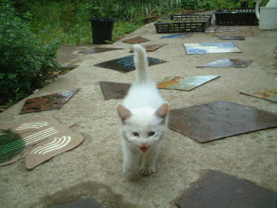| 参加した方全員に贈られる湯のみ。 | 会期中にやってきた、捨て猫ちゃん。 |