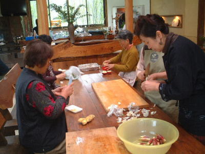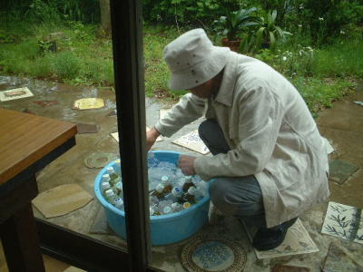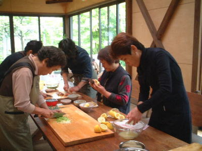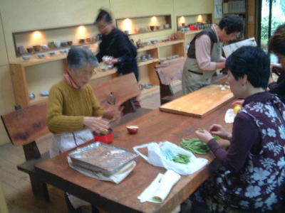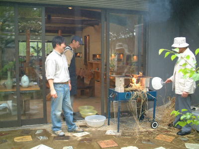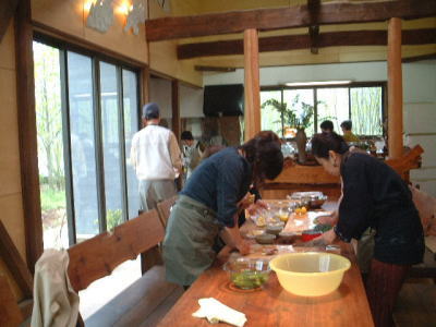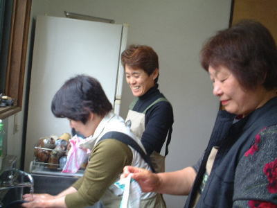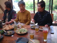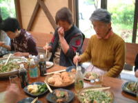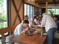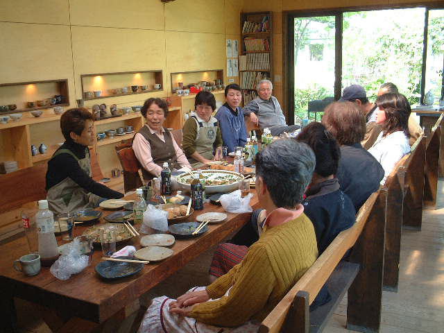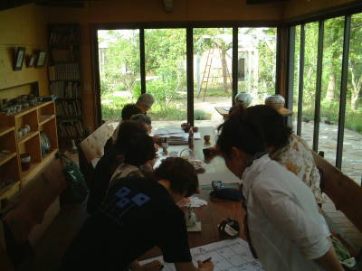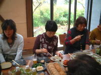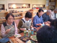 | ほっと一息・・・。参加者のいろいろな苦労話や技法の質問などが飛び交います。 | |