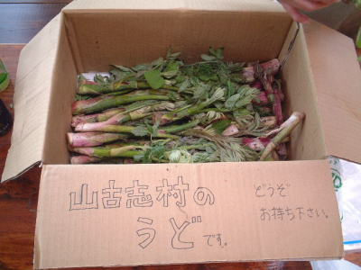 | 昨年11月の芋祭りのときに、地震災害義援金を寄付した、山古志村からおいしいうどが届きました。 | |