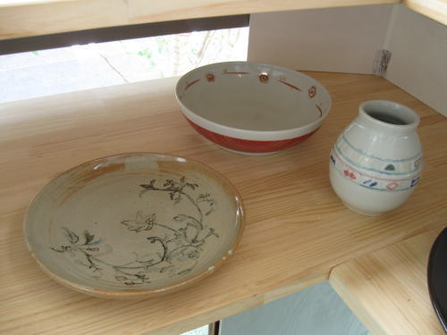 このエリアでは、「間」でも上級者の生徒さんたちの作品を展示即売しています。 展示スペースがあくと別な作品が姿を現します。 気に入った作品がいつ出てくるかはお楽しみ。 こまめにおいでになってチッェックしてくださいね。 (一部には講師の先生方の作品も展示即売してますので、こちらもご覧になってください。)