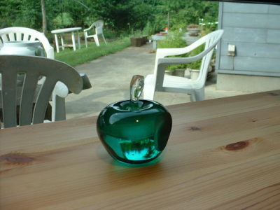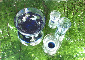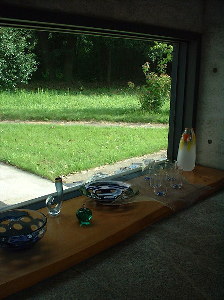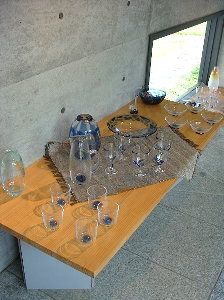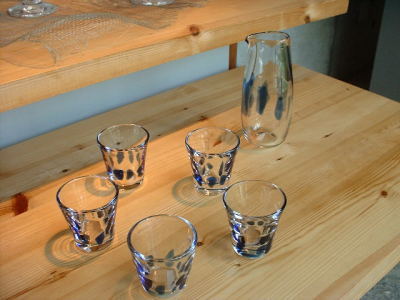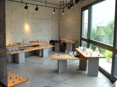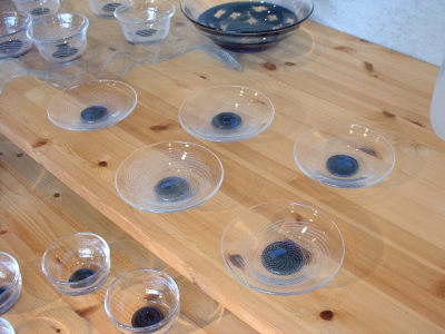 | 夏らしい、涼しげな会場風景になりました。 会期中、椎名ガラスのファンを始めとして、たくさんの人が おいでになります。 |