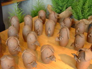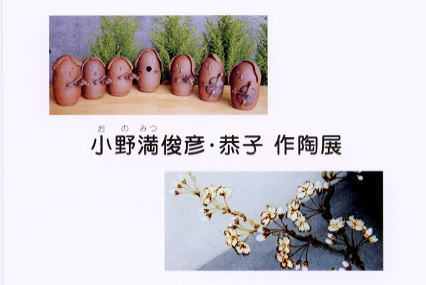 1995年,栗源町に窯を移し,96年第一回の二人展を開いてから5年がたちました。 今回は6回目の展覧会です。 俊彦はお気に入りの「ぽったー君」をオーケストラの数ほど作り,恭子は夜桜に挑戦しています。 また,イタリアの絵をそれぞれが作品にする予定です。 ぜひ,おいでくださるようご案内申し上げます。 小野満 俊彦 恭子