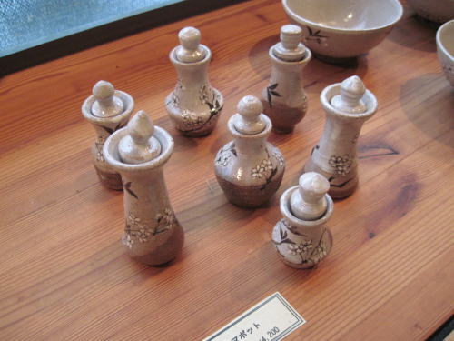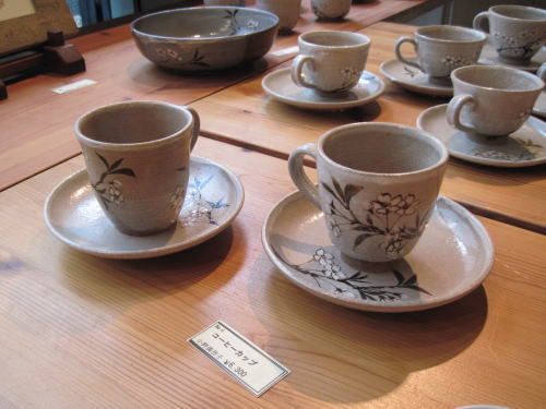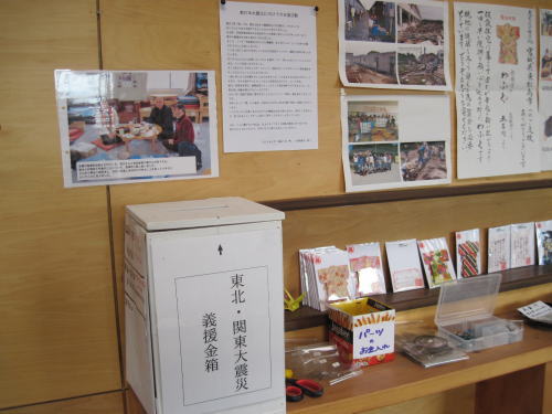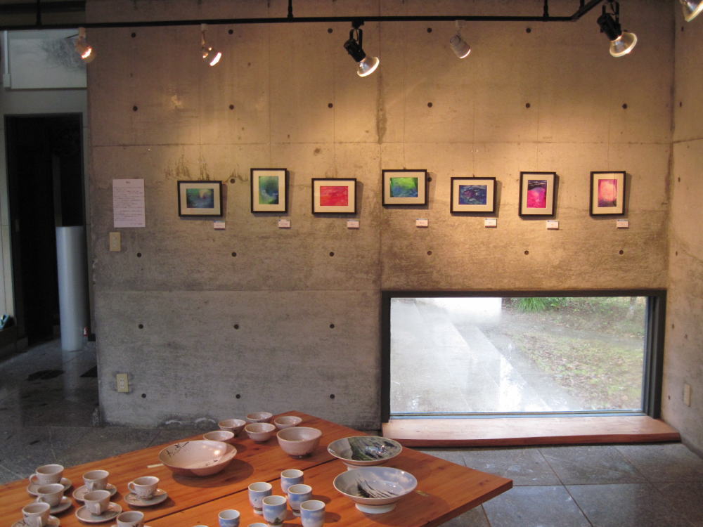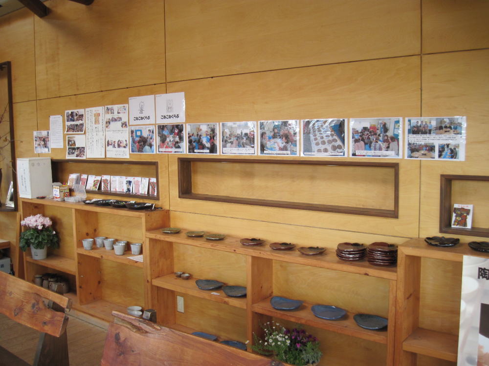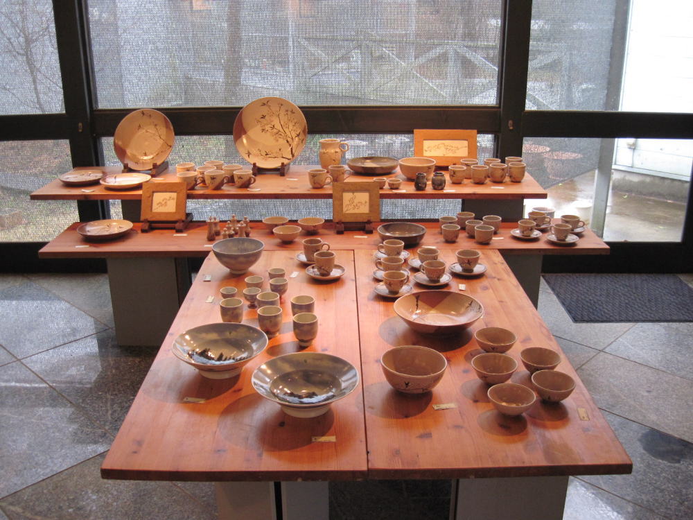 | ティールームでの東松島市支援作品展 (売り上げを毎月一回仮設のホールでのボランティア陶芸教室活動の資金に当てます。) |