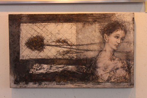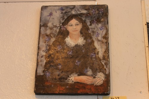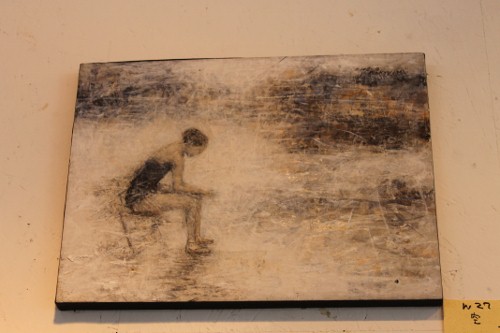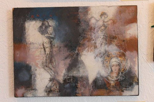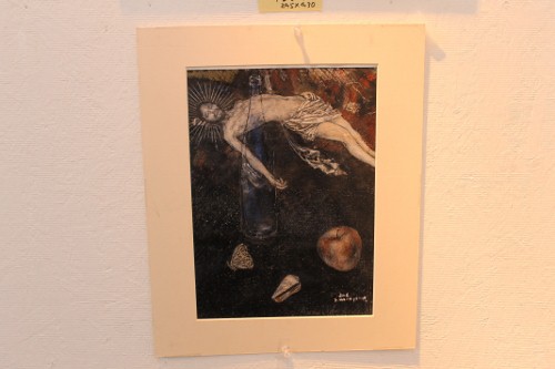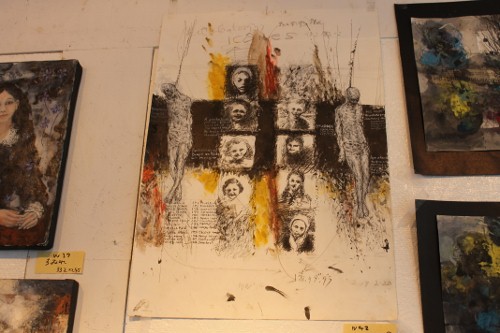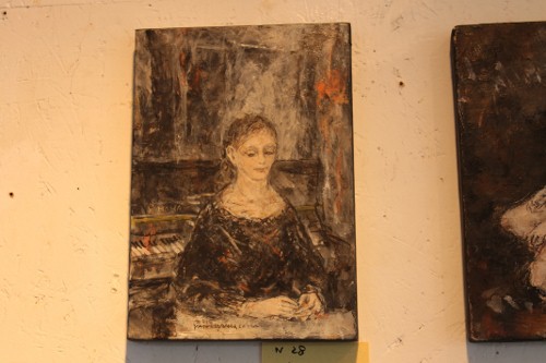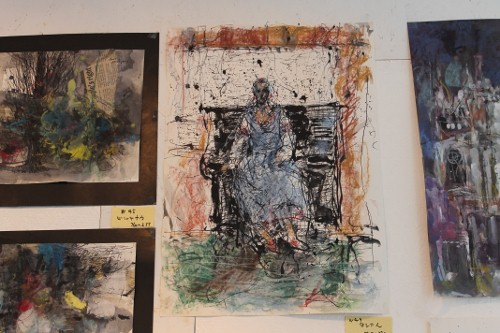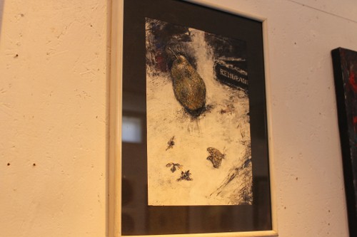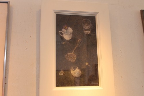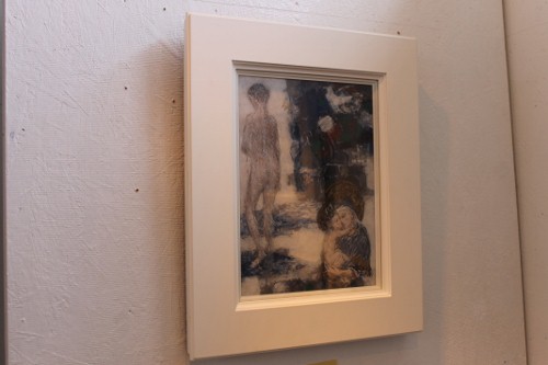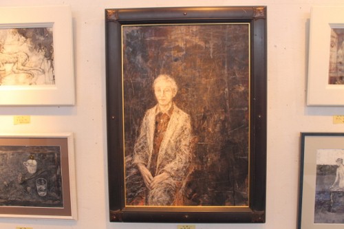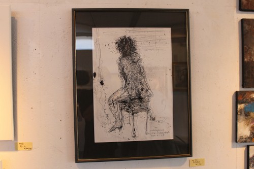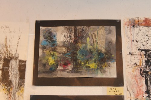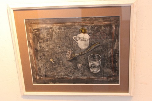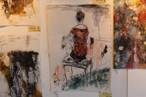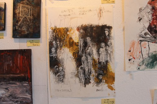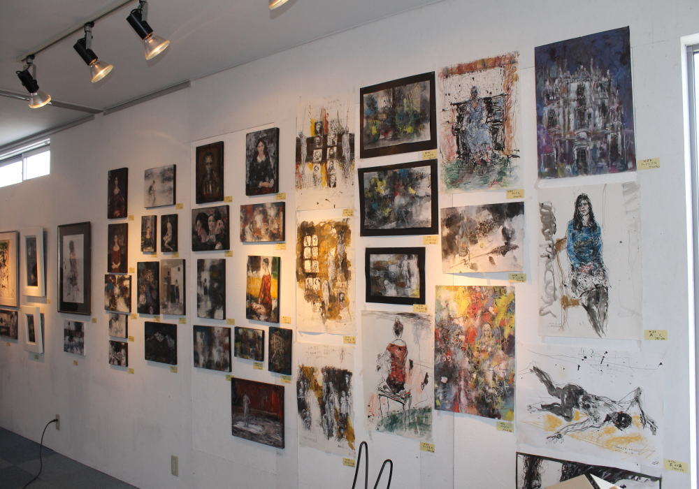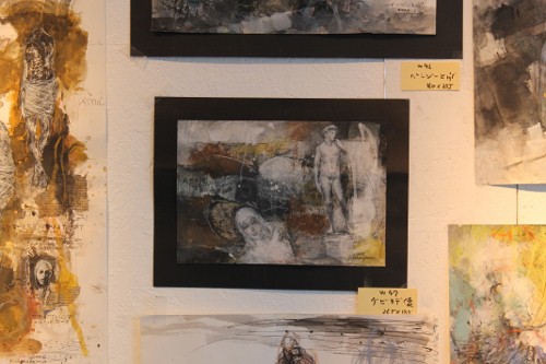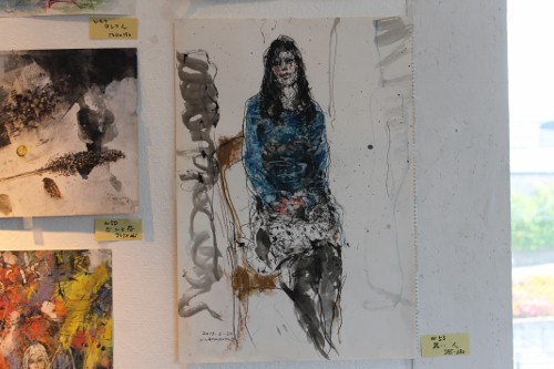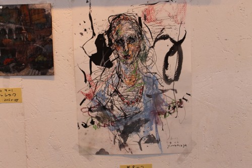 | ギャラリートークの様子 | 若山先生が来客の似顔絵を描いてプレゼントしてくれました。 |