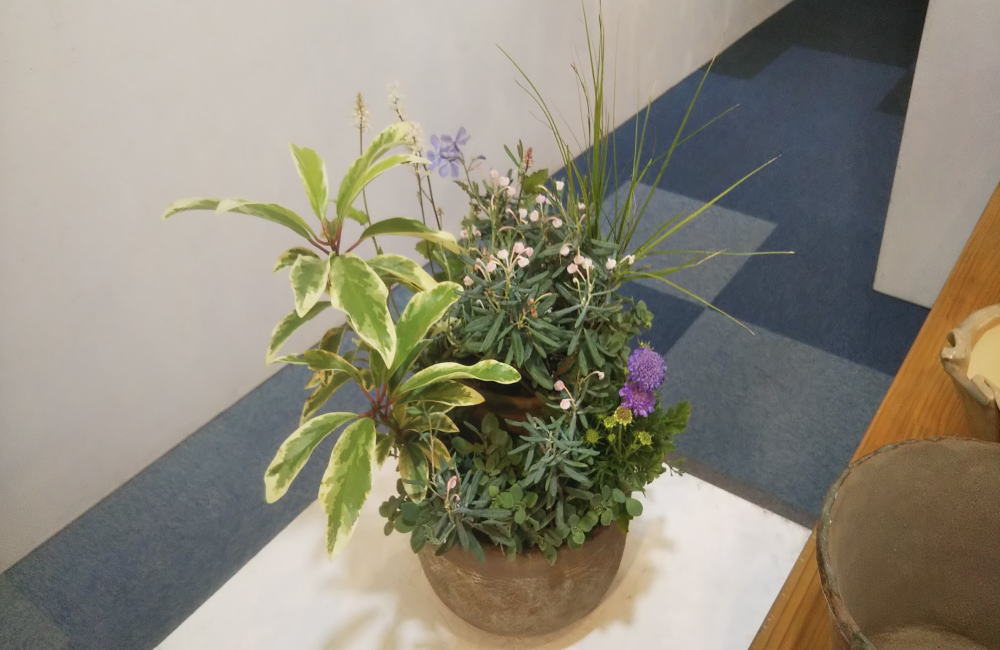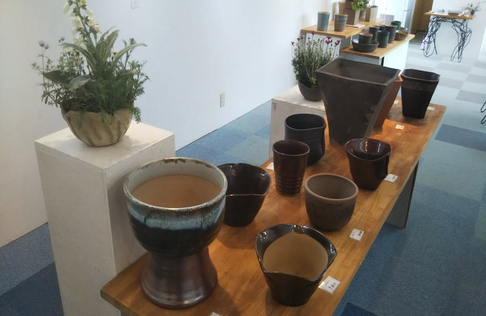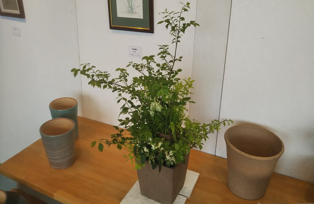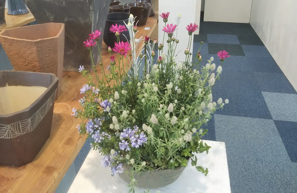 こちらをクリックすると会期中に行われた古賀先生の寄せ植え教室での作品を見ることができます。